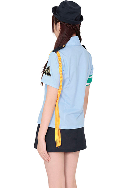 まるで本物と見紛う程リアルな婦人警官のコスチューム。爽やかな清潔感のある水色ブラウスに、スリット入りのタイトなきれい目紺色ミニスカートがセクシー!ネクタイ、腕章、ロープも付いた本格派コスプレ衣装セットです。