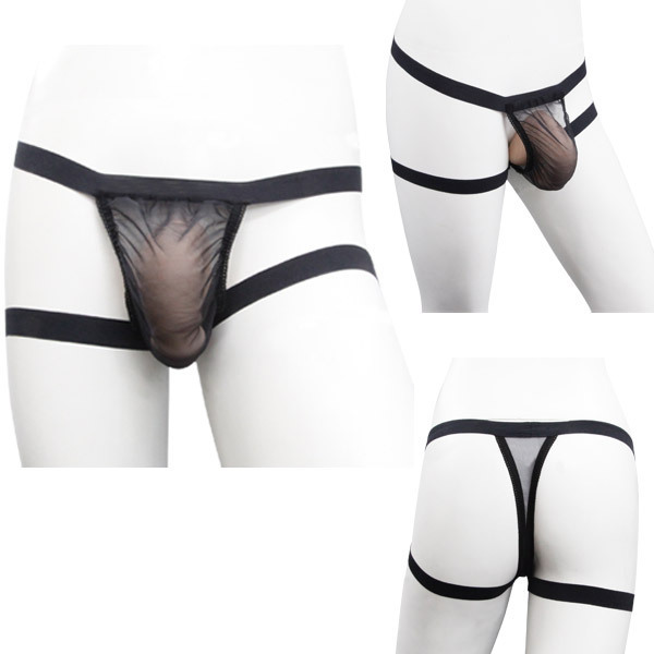 スケスケ黒メッシュ!ショーツのサイドをカットした、Tバック風メンズランジェリー。ウエストサイドと太股に幅広のストレッチバンドを採用!カッコよくデザインされた、セクシーなメンズショーツです。