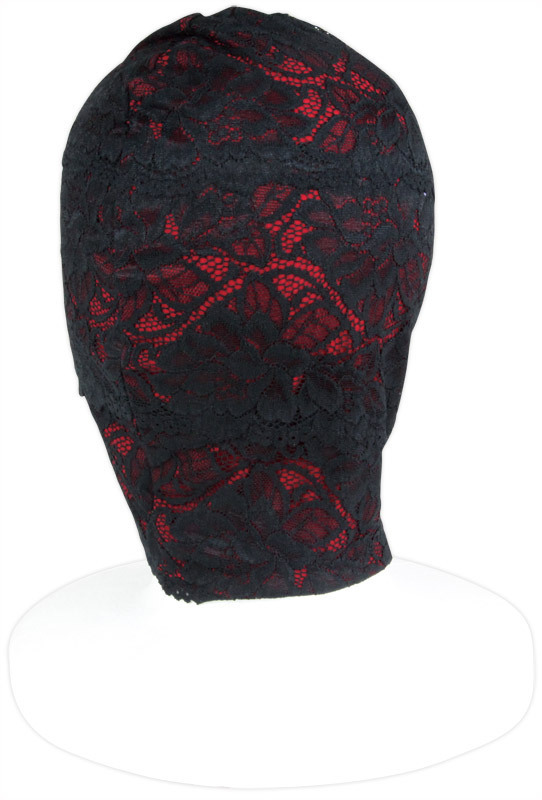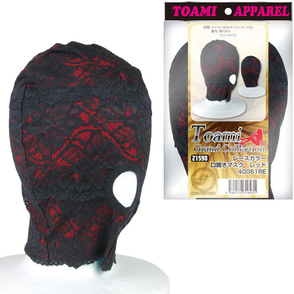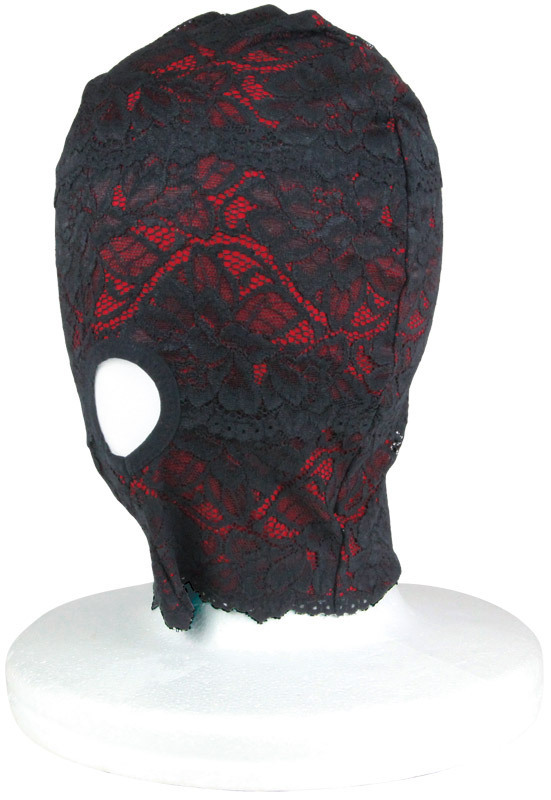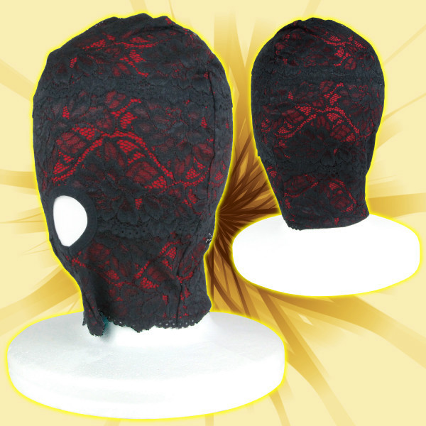 恥辱プレイにもラグジュアリーな雰囲気が欲しい!そんなエッチな大人のワガママを叶える、レース素材でできたエレガントな全頭マスク。真紅の生地に漆黒レースを重ねた高級感漂うデザインで、いつものプレイもワンランクUPしそう。口の部分だけ穴が開いているのでイラマチオにもぴったり!燃え上がる大人の夜にふさわしい、ムード満点なSMマスクです。