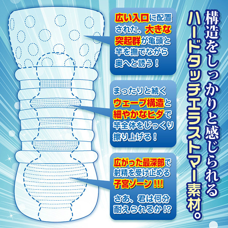 秘密のレッスン開始!まるでスローセックスのような極上の射精感を生み出すオナホール。●内部構造を活かすハードタッチエラストマー素材●耐久性に優れたむっちり肉厚のクリアボディ●挿入直後から優しく包み込む無数の突起●じっくりまったりとした締めつけが続くウェーブ構造●最奥は全てを受け止めてくれる広い子宮ゾーン●メンテナンスしやすい貫通タイプ●ミニボトルローション付属。じっくりと竿全体を舐め上げるような連続の細ヒダ刺激に、ずっと挿入していたくなる極上快感のオナホールです。