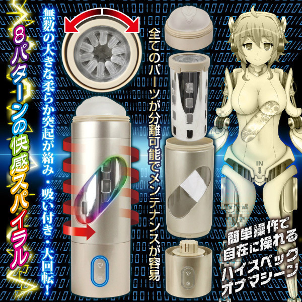 近未来感たっぷり!ギュンギュン回るアンドロイドのアソコを想定した充電式の電動オナホール。●ヴァギナを造形したシリコンヘッドキャップ●柔らか突起が四方八方から突き出た半透明ホール●激しい回転を補助するスペーサー●一部窓付き・中身が見えるシャンパンシルバーのカップ●USB充電式・電源装置が詰った底部キャップ●スクリューボタン:正・逆回転を操作●二重丸ボタン:8種のパターンから選択●USB充電コード付属。5つのパーツに分解可能!メンテナンス性も優れたオナニーマシンです。