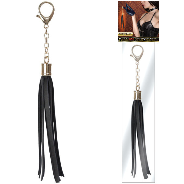 キーホルダーとして鞄やポーチに付けても可愛い♪持ち運びに便利な携帯用バラ鞭。●ストラップスパンキングB●シンプルなストレートタイプ●ミニサイズの10尾バラ鞭●高級感のある合皮製●ゴールドチェーン付き●ソフトSMに最適。小さくてキュートなデザインだから、初心者でも気軽にスパンキングプレイを楽しめるSMグッズです。