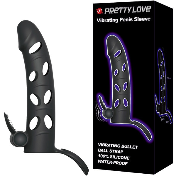 ロングプレイ、ロングサイズ、振動快感がこれ一つで全て揃う究極の電動ペニスサック「プリティラブ バイブレーティングペニススリーブ」。ひと回り大きなムスコでパートナーを責めたい!そんな願望を叶える高品質シリコン製の電動サポートグッズ。装着するだけで+1.5cmサイズUPの先端アンコ入りタイプ!安定したプレイを可能にする固定用の玉掛けリングや、クリトリスを刺激する着脱可能な高性能ミニローター&ブラシ突起も装備しています。また、本体側面にホールがあるので挿入感を損なうことなくプレイ可能です。