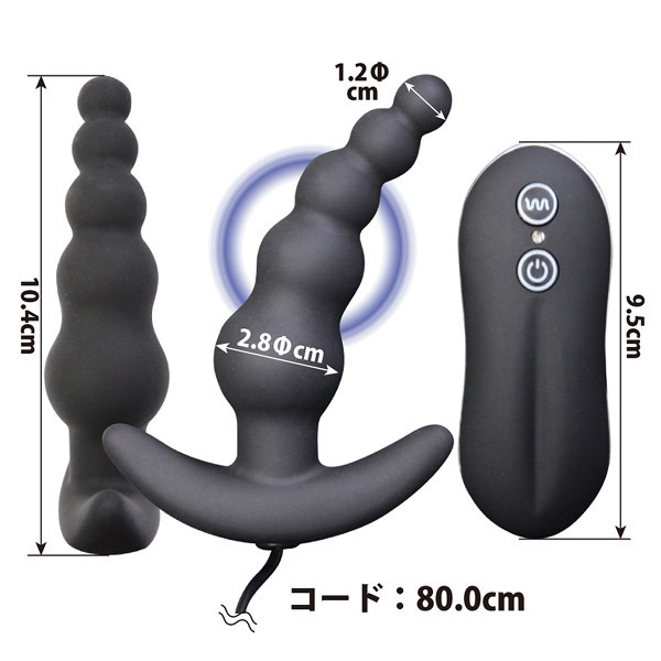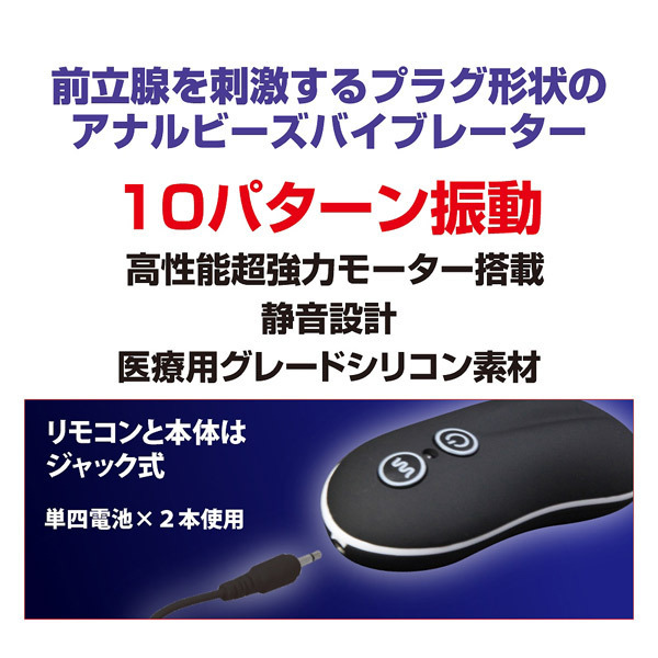 P-SPOT(前立腺)と会陰部を刺激&開発!アナルプラグにビーズの挿入感をプラスしたエルゴノミックデザインの電動アナルバイブ「P-SPOTバイブレーター ビーズタイプ」。段々と太くなるビーズ形状によるスムーズな挿入と最高のフィット感!高性能超強力モーターによる10パターンの振動がしっかりと伝わり前立腺を刺激します。挿入感や肌触りにも徹底的にこだわった医療用グレードシリコン製!本体とリモコンは取り外し可能なジャック式、丸洗いも出来て衛生的。パワフル振動ながら静音設計で安心!最高のフィット感を生むエルゴノミック(人間工学)デザインで前立腺と会陰を同時責めしながら開発まで出来る極上の前立腺刺激グッズです。単四電池×2本付属。