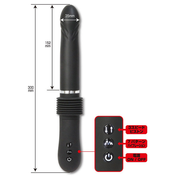 可動域なんと驚愕の6cm!世界最長の豪快ピストンバイブレーター「貫-TURANUKI-つらぬき」。3段階のピストンスピードと7種類のバイブレーションを搭載!可動幅6cmの大迫力ピストンでポルチオに直撃しまくり、先端部分に搭載された強力モーターで快感振動が奥まで響き渡ります。約120分のフル充電で60分の連続稼働が可能なUSB充電式(コード付属)です。