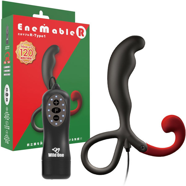 エネマブルが大幅にグレードアップ♪挿入時のフィット感が抜群に向上した「ENEMABLE R Type-1」。電動前立腺刺激グッズとして楽しめるこちらのEnemableRは性感の開発などに適していてアナルにくっきりとした刺激を与えてくれます。振動は120種類!IC機能付きの新モデルのコントローラーにより微弱から激震への12段階スピード、さらには多彩な10種類の振動パターンが楽しめます。会陰部を刺激する3段階の可動式アームとフックが確実に会陰部を刺激し、超低速からターボモードまで飽きのこないアクションが味わえます。前立腺を多点で刺激するEnemable Type1。こちらは入門者にもオススメの細身ボディで挿入もスムースです。単四電池×2本付属。