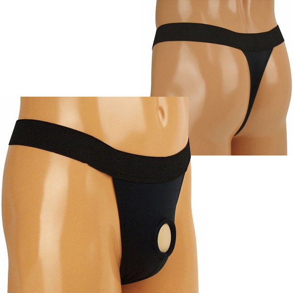 より逞しく、より美しく♪フロントにシリコンリングを内蔵したメンズショーツ「シリコンリング内蔵 太ゴムTバック ブラック」。腰周りは太めのゴムヒモを採用し、ガッチリとした安定感のあるはき心地!シンプルでクールなブラックカラーデザインの男性用オープンランジェリーです。