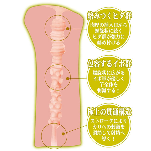 イイオンナ、友貴の淫乱メリハリボディをイメージ!小悪魔な天使のオナホール「イイオンナ、ヤリ放題 吉澤友貴」。肉厚の入り口から螺旋状に続くヒダ群が肉棒全体を締め付けて刺激!その後、ヒダで刺激された肉棒を螺旋状に広がるイボ群が優しく包み込みます。ストロークにより亀頭やカリへの刺激を調節し、独自の快楽を楽しめる極上の貫通式オナホールです。