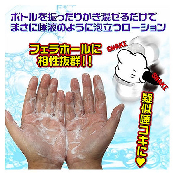 ボトルを振ったりかき混ぜるだけ♪まさに唾液のように泡立つ「なま唾ローション 120ml」。フェラホールとの相性抜群!唾液をイメージした低粘度ローション。ボトルを振ったりかき混ぜるだけで唾液のように泡立つので、擬似手コキも大興奮のリアルな快感へと進化します。