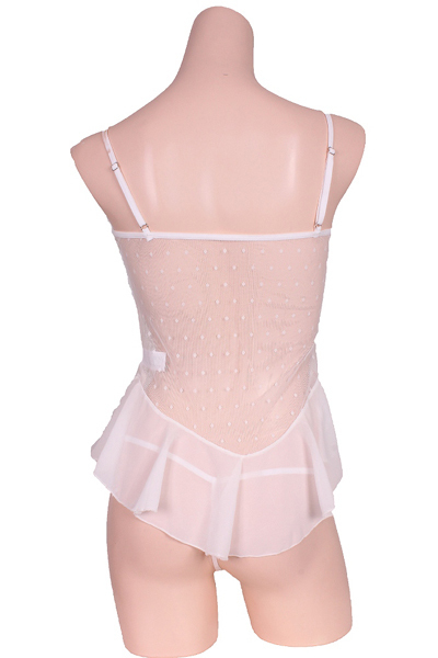 HOME > 下着 > ベビードール・スリップ > フリルとレースで可愛さ増しベビードール&Tバックセット ホワイト
