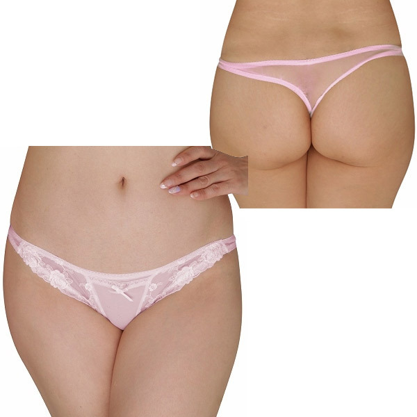 シースルー&レースポケット付きオープンTバック ピンク