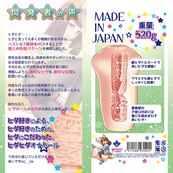全てのヒダ好きに捧ぐヒダ特化型オナホールです♪非貫通の肉厚なオナホはやわらか素材で、持てば垂れるほどの柔軟さ。挿入すればマシュマロのように優しく包み込み、しっとりと身体へ吸い付いてきます♪さて、内部構造ですが、入った瞬間からびっしりとついた横ヒダとトルネードした縦ヒダが貴方の裏筋をゾリゾリと刺激。進むと現れる激狭ゾーンで締め付けながらも、ひしめき合う横ヒダの刺激で射精感はみるみるうちに上昇!締めと言わんばかりに最深部で待ち構える波ヒダが亀頭を責め立てます♪何回ものテストで男性従業員がこぞって早漏になってしまったのでは?と思わせるほどだからその実力は確か!ぜひ一度、体験してみてください♪こちらはローションがついておりますので、届いたその日にお使いいただけます。また、ご自身のローションをお使いになられる場合は、シャバシャバ系の低粘度ローションをお勧めいたします♪