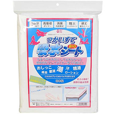 潮吹きもオイルプレイもスカトロプレイも♪あらゆるプレイの汚れを気にすることなく楽しめる使い捨てタイプの日本製の吸水シート(BIGサイズ)。医療現場でも使用される本格派で、消臭成分を配合しているのでニオイをしっかり軽減♪おしっこや汗に愛液など、約3Lもの液体汚れから貴方のベッド守ります。これまでベッドが汚れることを気にして挑戦できなかった開放的なプレイを、こちらの給水シートを敷いてぜひ挑戦してみてはいかがでしょうか?