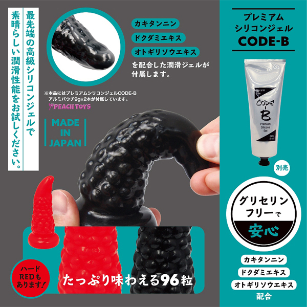 ツノを立てたような計算しつくしたカーブ形状が欲しいポイントに適確にフィットする!96粒のイボが付いた日本製のアナル専用ディルド(黒)。奥に挿入するほど太くなる形状は見た目以上に刺激的!プニプニとした程よい弾力と柔軟なボディが絶妙な快感をもたらします♪