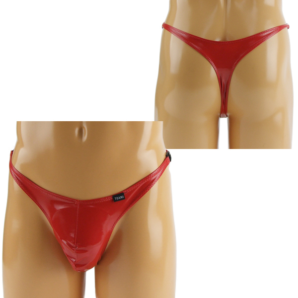 HOME > 下着 > 男性用ショーツ・ビキニ > メンズ エナメル両サイドワンタッチバックル付きTバック レッド