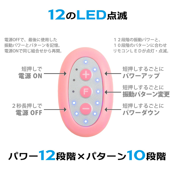 120種類もの快感が選べる♪遠隔プレイ好きのためのリモコンローター黒(USB充電式)。12段階の振動×10種類の振動パターンを搭載!豊富な快感から貴方好みの刺激が必ず見つかる♪10m先の範囲まで遠隔操作可能で、5分で自動的にOFFになる一時停止機能も完備!リモコンには目で見て解りやすいLED×12個も付いています。完全防水&静音設計※リモコンは電池を内蔵