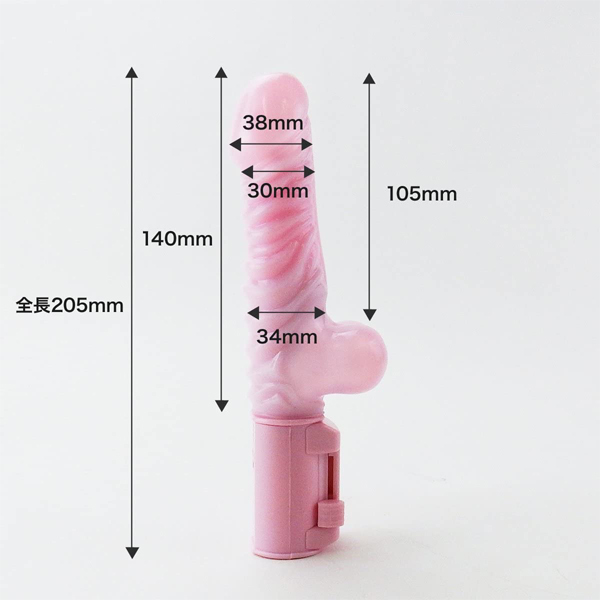 初心者さんでも安心出来るこだわり設計!裏スジがクッキリと浮かび上がるリアル造形の電池式バイブ(単四電池を4本使用)。程よいサイズ感で快感ポイントを的確に刺激、膣の中とクリを同時に責め立てる!素材には柔らかく弾力のあるエラストマーを使用で初めての方でも安心♪淡いピンク色が可愛い女性の声から生まれた女性のためのバイブ。スイング&振動機能付き