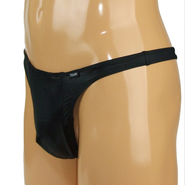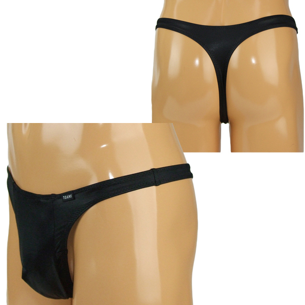 HOME > 下着 > 男性用ショーツ・ビキニ > メンズ 光沢ストレッチ生地玉袋付きTバック Mブラック