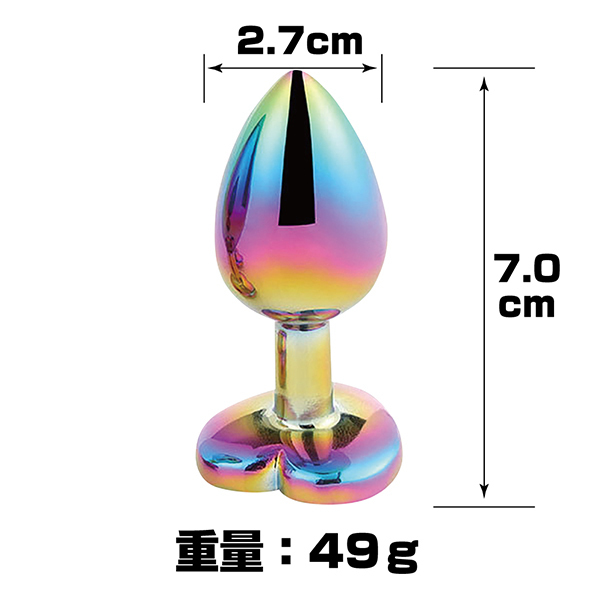 アナルのプレイにチョイス♪マルチカラーハートプラグハート形のアナルプラグです。高品質なステンレス製で表面は滑らかで先端が短いため、思いのほか簡単に挿入が楽しめます♪使用後は綺麗に洗浄でき、収納袋付きなので1つずつ収納することで、擦り傷などを防止できます。本品はジョークグッズとなります。その他の目的でご使用された際の責任等は一切負いかねますのでご了承ください。