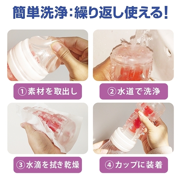 挿入直後からクリップされるように迫りだすコブとブロックのようなヒダの刺激がたまらない!2構造のインナーホールにソフトゲルが包み込むハードな内部構造体が刺激的な非貫通オナホ「CRYSTAL」。こちらは挿入直後からのコブやブロックのようなヒダ、最奥の尿道を突き刺すように待ち構える突起が特徴の超ハードな刺激タイプ!絞り込まれるような超快感をぜひお楽しみ下さい。ローション付。