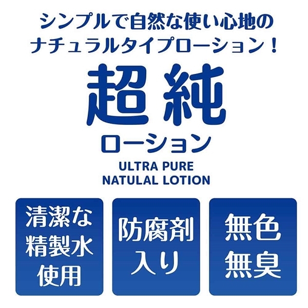 「どこまでも自然」をモットーに作られた万能型ローションです。ありとあらゆる場面で活躍してくれる定番商品としてオススメです。ローション選びに迷ったら超純で間違いなし!●360ml