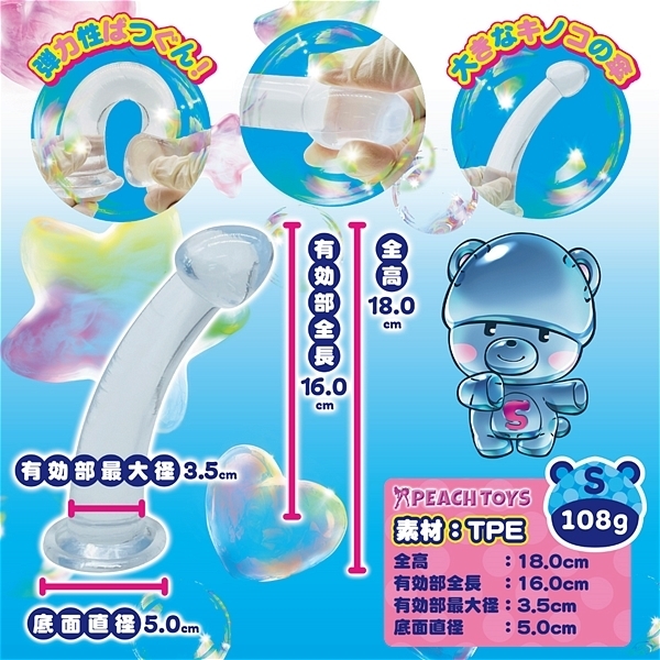 『透け透け!スケスケ!ニョッキニョキ!ニョッキノコ!』つるんとスムース♪クリア素材のディルド!!「スケスケニョッキノコ」ディルドの登場です!・ニョキっとSサイズ☆・平均サイズよりもやや小ぶり。初心者向け!細目でつるんと!お手軽