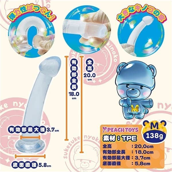 『透け透け!スケスケ!ニョッキニョキ!ニョッキノコ!』つるんとスムース♪クリア素材のディルド!!「スケスケニョッキノコ」ディルドの登場です!・ニョキニョキっとMサイズ☆☆・平均サイズよりやや大き目。長さも十分!少し大き目がちょどいい