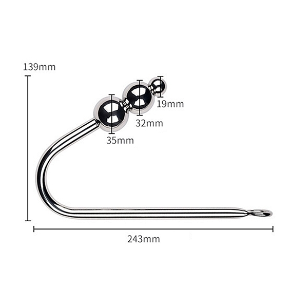 強烈な刺激と見た目の凌辱感が高いのがア○ルフックです。挿入するだけでピンポイントに刺激を与え、金属の硬く冷たい感触が何とも言えない快感を生みます。玉が3個付いている衝撃の形状で同時刺激が強烈に楽しめるア○ルフックです。首輪とチェーンで繋げば、ア○ルフックの重さで首輪も引っ張られるといった凌辱プレイや立った状態で吊り上げて使用すれば、吊り上げる刺激、緩めた時にフックが抜けない様にア○ルを締めさせる調教も出来ます。
