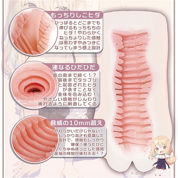 モチモチふわふわで雪のように白い肌。10mmを超える連なるヒダヒダを一枚ずつ掻き分けながら奥まで侵入。綺麗なボディと柔らかな感触で至福な時間を味わえる。300gと実用性にも優れたサイズ。パッケージイラストは人気イラストレーター「ユイザキカズヤ」先生の描き下ろしです。