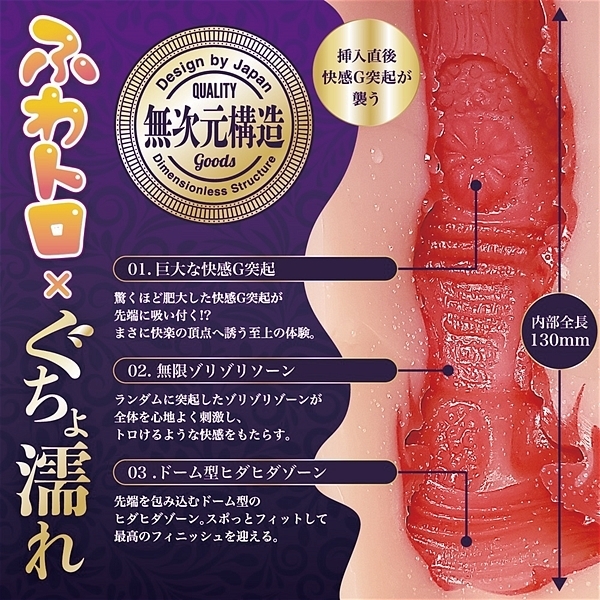 ふわトロとぐちょ濡れ名器のコラボレーションEXTACY!超生感と超柔感を掛け合わせたリアル体験を。530g肉厚ボディにいやらしく膨れ上がったビラビラから侵入しヒダひだ、ツブツブビラビラの無次元構造で果てる。80ml本気汁ローションも付属しているのでたっぷり濡らしてご使用頂けます。