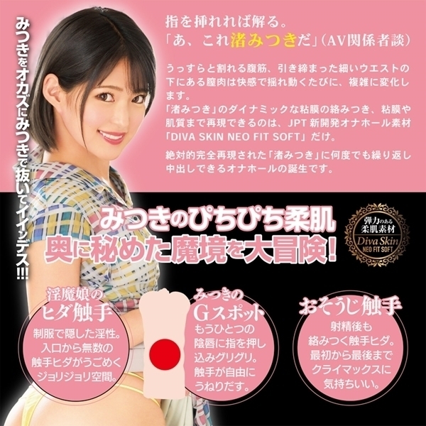 みつきのぴちぴち柔肌に「やみつき」になる挿入感。粘膜の肉質を再現する、新素材「DIVA SKIN」が、「イイオンナ」オナホールを進化させました。セクシー女優界の「ネズコ」ちゃんこと「渚みつき」ちゃんは、イタズラな小悪魔笑顔と美しいスレンダーボディの女の子。かわいさ爆発中の「みつき」ちゃんのしなやかな腹筋を感じる粘膜構造を完全立体化。女性の粘膜の感触を再現する新素材「DIVA SKIN」