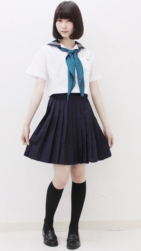 レトロで可愛い夏セーラー!お嬢様学校風のなりきり制服コスチューム。●3本ラインの紺襟がキリッとかっこいい半袖セーラー●左胸のポケットには校章風の刺繍入り●襟元の白い切り替えと青緑のスカーフがベストマッチ●膝丈のシンプルな濃紺プリーツスカート。セクシーよりも真面目が似合う!お手持ちのハイソックスにローファーシューズを組み合わせたりメガネ女子になってみたり、小物のアレンジで遊べるコスプレセットです。※水洗い不可、塩素系漂白剤による漂白不可、アイロンは中温で当て布使用、ドライクリーニング可、色落ちの可能性があります、ご注意ください。※こちらの商品は在庫の状況によりお届けまでに4日〜7日程度かかる場合がございます。