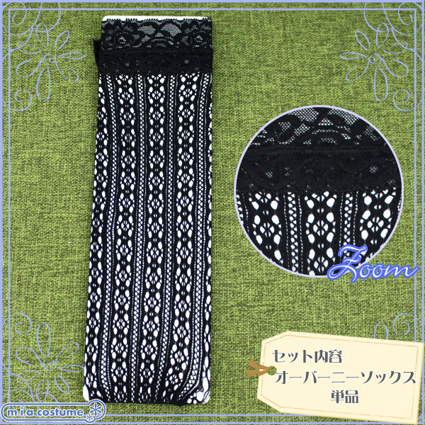 HOME > 衣装・コスチューム > 小物(猫耳カチューシャ・ニーソ) > レース付き花柄メッシュニーハイソックス 黒 140〜160cm