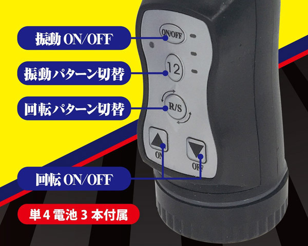 潮吹き上等!ヒィヒィいわせるパール内蔵スイングバイブ「イカす!番長バイブ スモーク」。●ツルンと細身のクリアスモークボディ●自慢のカリクビ亀頭でGスポ責め●ぴっしり銀玉パールで回転責め●強力振動の玉袋型クリバイブ●12振動&3段階の回転スピード●スイングはリバース機能搭載●振動とスイングは個別に操作可能●単四電池×3本付属(動作確認用)。ワイのバットでイカせたるっ!パール&回転機能を搭載した二点責めバイブレーター。亀頭のカリはしっかりと張っていますが、挿入しやすい細身フォルムで初心者の方でも安心です。