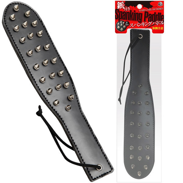 究極のお仕置きプレイに♪SM上級者向けの鋲付きスパンキンググッズ「鋲付きスパンキング パドル」。24本の鋲を備えたハードなパドルでフルスイング!鋲は片面のみなので、裏側の平らな面でスタンダードな調教プレイも可能です。【素材】パドル:PUレザー/鋲:亜鉛メッキ。