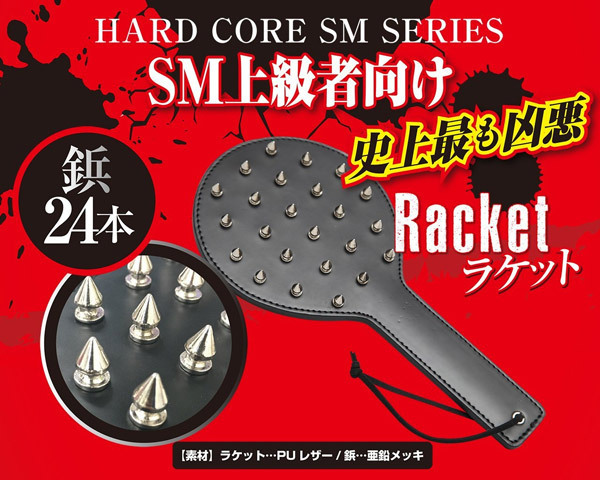 究極のお仕置きプレイに♪SM上級者向けの鋲付きスパンキンググッズ「鋲付きスパンキング ラケット」。24本の鋲を備えたハードなラケットでフルスイング!鋲は片面のみなので、裏側の平らな面でスタンダードな調教プレイも可能です。【素材】ラケット:PUレザー/鋲:亜鉛メッキ。