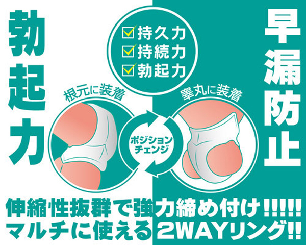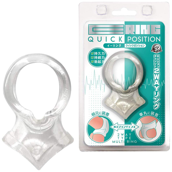 伸縮性抜群で強力締め付け!マルチに使える2WAYリングのイーリング クイックポジション。持久力や持続力、勃起力の悩みはコレ一つでOK!根元や睾丸にリングを装着するだけで夜のお悩みを手軽にサポート!エラストマーだから誰でもぴったりフィット。