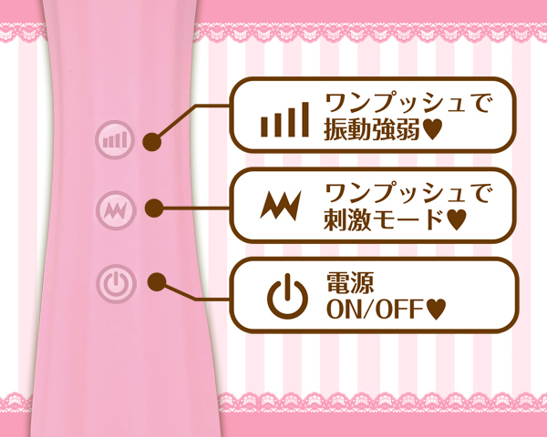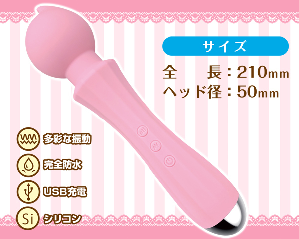 スレンダー美人なグラドルAV女優「吉高寧々」も身悶えたキュートなピンクカラーのUSB充電式電マ。出っ張った先端がピンポイント刺激に対応!クリや乳首を責めると同時に周囲までしっかり振動を伝えます。素材には柔らかなシリコンを採用、振動は5種類のパターンと3段階強弱を搭載!超強力モーターが生み出す快感を貴方も体験しよう♪完全防水、2.5時間充電で2時間連続稼働