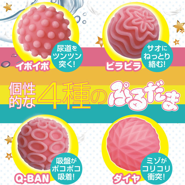 4種類の個性的なぷるだまが多様な刺激を生み出す新感触の非貫通オナホ。付属のボールを最奥に入れることでピストンするたび亀頭を刺激、子宮を突いているような感覚を味わえる♪イボやリング状、ダイヤ模様、ビラビラなど全4種が付属。色んな球を突いて子宮姦を楽しもう!内部は奥へ引きずりこみゴリゴリ刺激する横ヒダ絡むイボ構造◎ローション付属