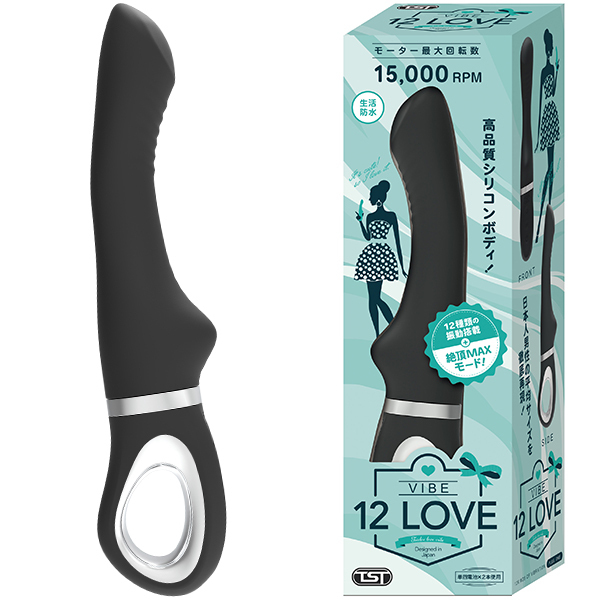 12LOVEシリーズからスタイリッシュバイブが新登場!静音タイプながら弱振動から強振動の12パターンを搭載し、ボタン1つで簡単ラクラク操作♪ボタン上部を押している間はモーター最大回転数15000RPMの超強力振動により一気に絶頂MAXへと導きます。バイブの先端はゆるやかなフラット形状なので、なでるような刺激が可能となり抜群の快感度を実現。最適な挿入角度を追及した設計デザインとなめらかな高品質シリコン素材によりGスポットへ強い刺激を与えます。本体は安心の生活防水で、付属の単4電池×2本によりすぐ使用できます。●カラー:ブラック
