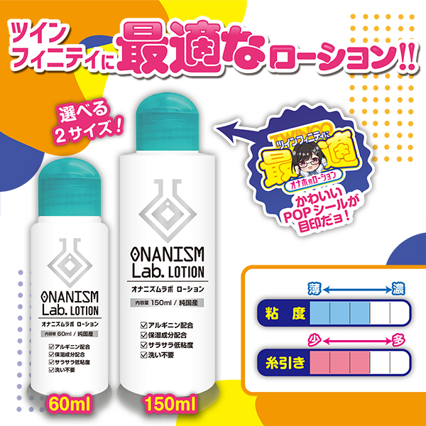 人気のオナホシリーズ『ツインフィニティシリーズ』に最適なオナホ用ローションが遂に出た!!オナホに最適な粘度感で、内部でよく馴染む。アルギニン配合で、ベストな状態をキープしながらガチガチシコシコ♪サッとひと拭き洗い不要で楽チンチン。純国産だから安心安全に使えちゃう。もちろん、ツインフィニティ以外のオナホに使っても楽しめる!ひとつ上のオナニー体験がさらに加速する…オナニズムラボローションで新しい快感を手に入れよう♪60mlタイプは持ち運べるお試しサイズ