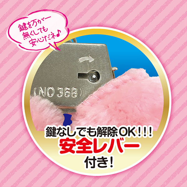 オシャレにソフトSMしてみない?かわいいファー付きの手枷が、定番の4カラーで同時発売!もちろん、プレイが盛り上がる鍵も付属♪ファー付きだから、長時間でも痛くなりにくい!!カチカチッとスライドさせれば簡単に拘束調整ができ、鍵を万が一なくしても解除できる安全レバー付き!プレイだけでなく、普段のちょっとしたファッションにプラスしてもカワイイ♪やっぱりド定番のピンクにしちゃう?