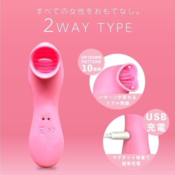 舌の動きと吸引、2つの機能を搭載したローター。それぞれ10パターンの動きを切り替え可能。MOTLABに女性向けグッズブランド、ハートラインが誕生。2WAY Cris Rotorは舌先のような振動と唇の様な吸引、2つの良いところを併せ持ったローターです。それぞれ10パターンの動作を切り替え可能。舌側は高速で上下する舌先がときに優しく、ときに激しく快感ポイントを刺激します。吸引側は吸い付きながらブルブルとした振動も楽しめる2段刺激です。舌側・吸引側それぞれがワンボタンで操作可能なシンプル仕様。生活防水なので安心して使え、使用後は洗浄し清潔に保てます。