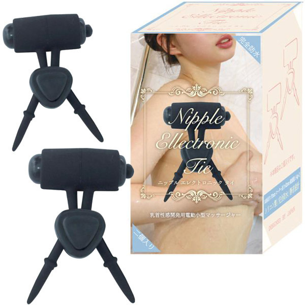 乳首に当ててボタンを押して締め付けるだけの簡単設計!タイデザインの乳首責めローター2個セット「ニップルエレクトロニック タイ」。乳首に装着してボタンを押すだけでビリビリ乳首を刺激!お風呂でも楽しめる防水仕様、左右同時責めが出来る2個セットです。ローターは取り外し可能、ボタン電池(LR41)×3個使用、計6個付属。