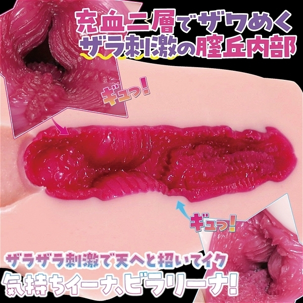 長〜いビラビラがギュっと包み込む、ビラビラ系オナホール。充血二層の凸凹がたまらない…ぐにゅぐにゅ膣丘でザワめくザラ刺激。個々の鋭角なヒダ丘がじんわり背筋ゾクゾクMAXへ招いてイク。いやらしく伸びたビラビラはぴたぴたと過敏に刺激していつも以上の興奮度。ハード素材をソフト素材で覆う事で圧は外に逃がし触れる部分のみがハードエッジを保ちます。長いビラビラと真っ赤に紅潮したリアル内部でテンションMAX間違いなし!