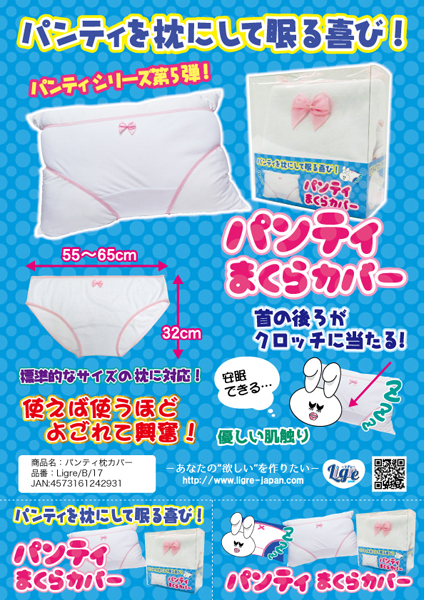 マニア唸るパンティシリーズ第5弾!枕に穿かせるパンティー風枕カバーが登場。寝つきが良くなるか興奮して眠れなくなるかは貴方次第!うなじが絶妙な具合にクロッチ部分に触れるため使いこむほどに味が出ます♪