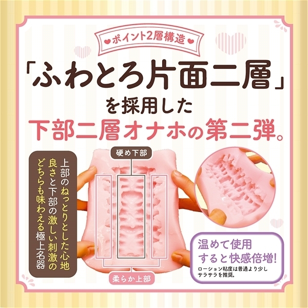 「ふわとろ片面二層」のポイント2層構造を採用した下部二層オナホの第二弾。上部は柔らか、下部は固めの素材を使い上部の過度な刺激を緩和し気持ち良さを重視しつつ、下部は裏筋をゾリゾリ刺激する。肉厚なヒダと細目のヒダが内部で複雑にうねりゾワゾワ、ゾクゾクした快感が押し寄せる!上部のねっとりとした心地よさと下部の激しい刺激のどちらも味わえる極上名器。下部にあるボコボコとしたヒダで裏筋を高刺激、上下左右の有機的なヒダがうねり絡み付いてくる。新素材「ハイマテリアルスキン」使用で高弾力●メーカー型番:TMPR-041