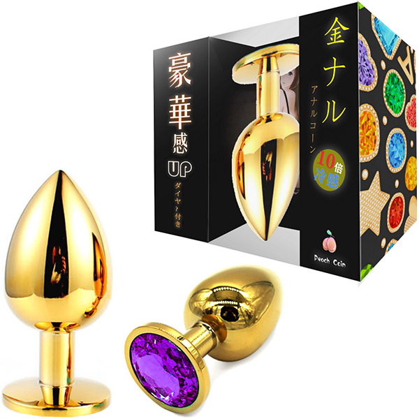 金色のプラグにキラキラとしたゴージャスな輝き!メタルの重量感・冷感がアナルを刺激し見た目も華やか。サイズもS・M・Lの3サイズあるため、お好みのサイズとカラーでお楽しみください。Mサイズ、パープル