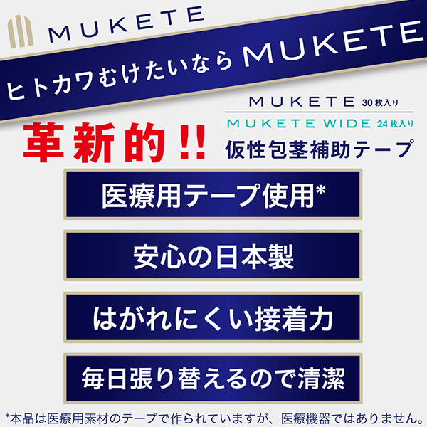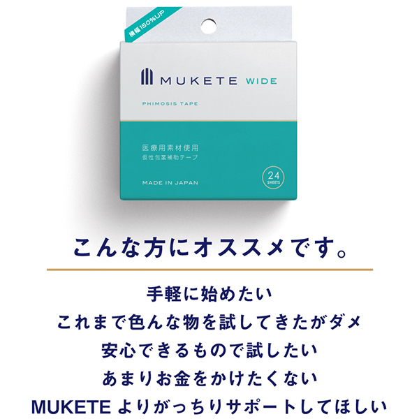 HOME > 男性器増大・包茎矯正 > 矯正 > MUKETE WIDE 24枚入りBOX