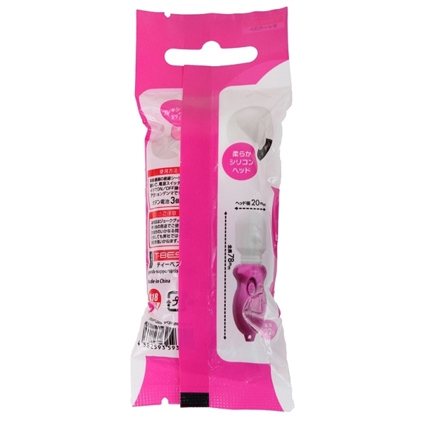 パッケージ:13.0×5.0×2.0cm 本体:7.8×2.0cm 重量:22g 電池:ボタン電池×3個使用